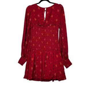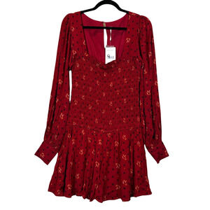 Free People Smock It Too Me Floral Dress Ruby Combo OB885578 Women's Small NWT