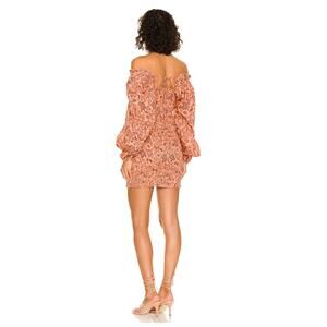 A boho-chic floral print and a smocked finish lend flattering elements to a figure-hugging minidress framed by a ruffled square neck and long blouson sleeves.