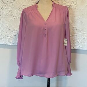 Free People Smocked Blouse Top Long Sleeve Ruffle Moonlit Orchid Pink Sz S $88.