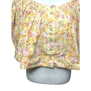 Free People Smocked Crop Top Off Shoulder Floral Button Front Multicolor W S NWT