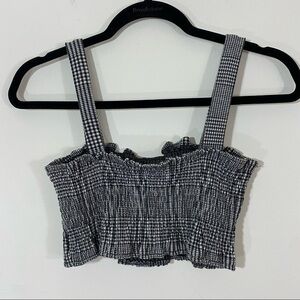 Free People Smocked Crop Top Tank Black White Gingham Plaid Print Cropped Small