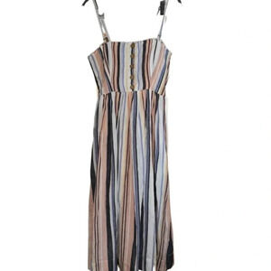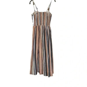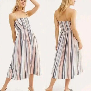 Free People Smocked Multi Colored Stripe Cotton Midi Dress Size Small