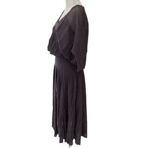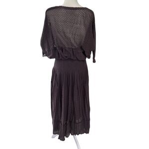 Free People Smocked Smoked Purple Textured Cotton Midi Dress Size Small