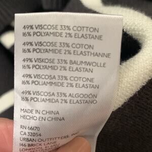 Dark washed gray with bone colored stripes. Pullover. Cropped. Long sleeve. Turtleneck. Viscose blend. Size small. Excellent used condition - no rips, tears, or stains. Flat lay measurements are approximate.