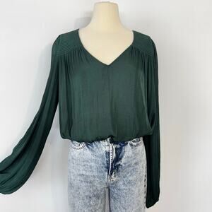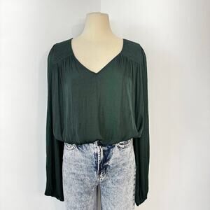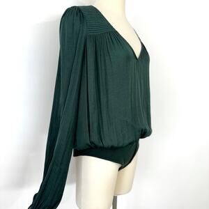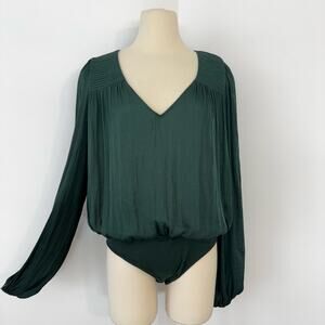 Free People Smokin n Rockin Bodysuit Long Sleeve V-Neck in Green S