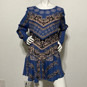 Free People Smooth Talker Floral Printed Tunic Dress Black Multi Color Size S