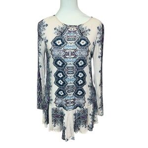 Step out in style with this elegant off white dress featuring a striking blue pattern. Perfect for any occasion, this dress combines comfort with a chic design.