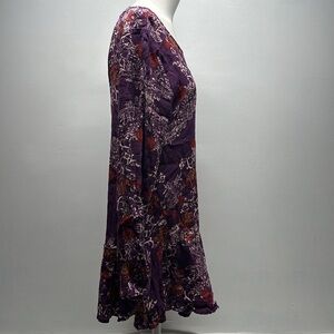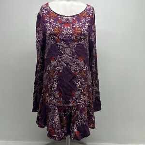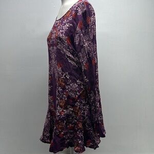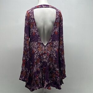 Free People Smooth Talker Tunic Mini Dress Long Sleeve Floral Purple Size Medium