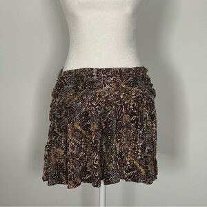 Free People Snake Print Mini Skirt Ruched Waist Size 8