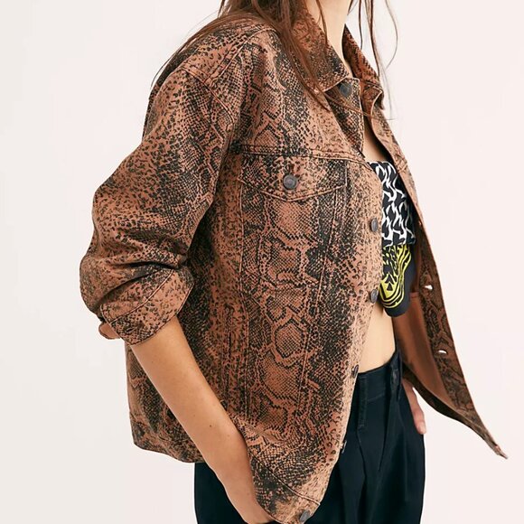 Free People Snakeskin Print Trucker Jacket Sz S Oversized