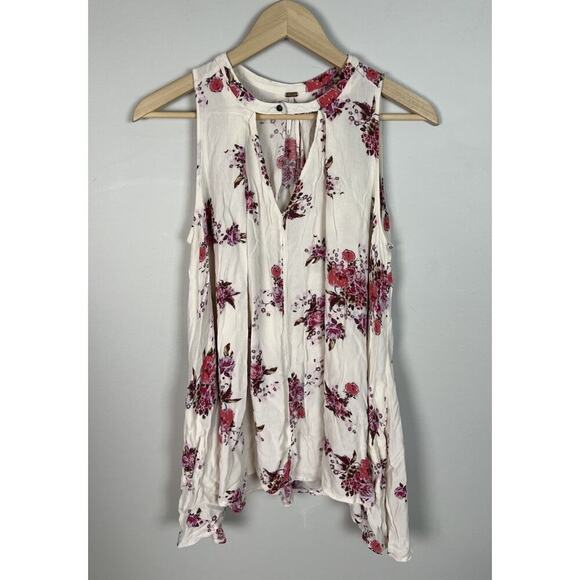 Free People Snap Out Of It Swing Tunic Dress Ivory Floral Size XS Rayon Women’s
