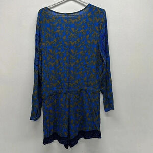 Free People Snap Out Of It Romper Playsuit Shorts Blue Paisley Floral Size XS
