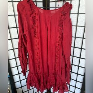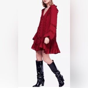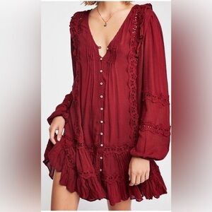 Free People Snow Angel mini boho maroon oversized shapeless dress Elegant SZ/L