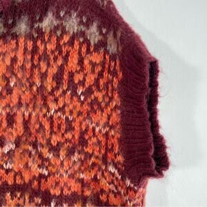 Free People Snow Bunny Maroon Orange Wool Alpaca Fair Isle Sweater Small