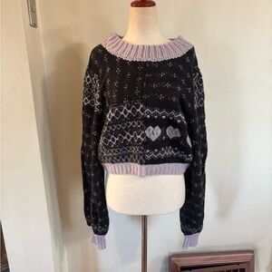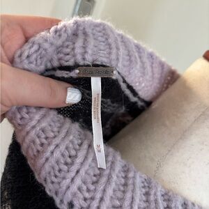 Free People Snow Globe Alpaca Wool Blend Pullover Sweater Black Purple sz Med