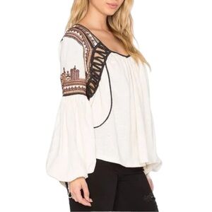 Free People Snow Kisses Cream Embroidered Puff Sleeve Top size XS