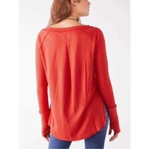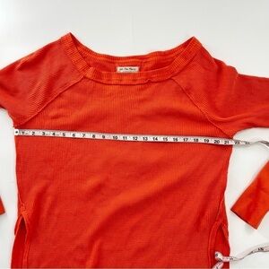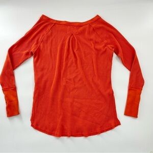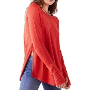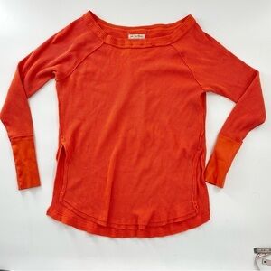 Free People Snowy Thermal in Heatwave Orange Oversized Lightweight Boho Top Small. Relaxed bohemian light weight boat neck thermal tunic top. Has side splits and back pleat. In NWOT condition.