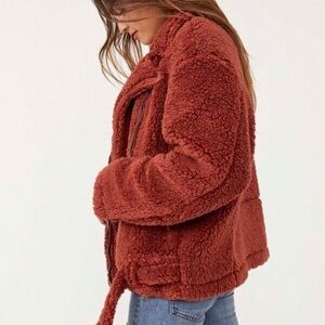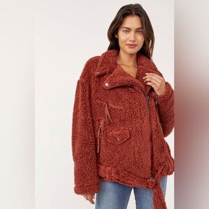 Free People So Cozy Slouchy Fleece Sherpa Moto Jacket in Cinnamon