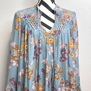 Free People So Fine Floral Bloomcore Sz S Sheer Layered Tunic Top.