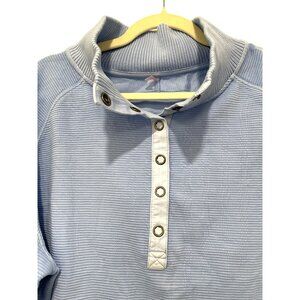 This cropped pullover shirt combines a casual silhouette with a polished design. Featuring a ribbed texture, button-up collar, and soft cotton blend fabric.