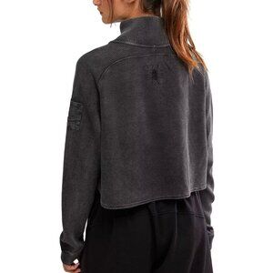 This cropped pullover from Free People offers a blend of style and comfort, featuring a versatile snap-up collar, textured waffle knit, and functional pocket detail.