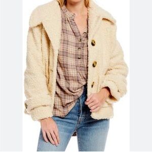 Free People So Soft Cozy Sherpa Peacoat Cream Sz S Boho Oversize Casual Cabin
