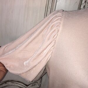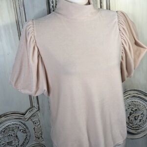 Free People Soft Blush Velveteen Mock Neck Balloon Short Sleeve Popover Top S/SP