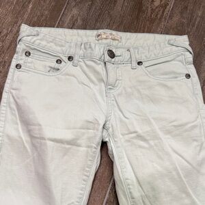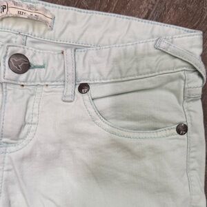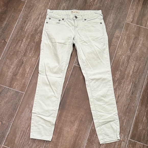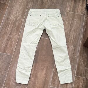 Elegant cream mint skinny jeans. Perfect for versatile styling. Comfortable and sleek design.