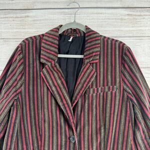 Free People Soft Striped Blazer Jacket Womens Large Red Blue Beige