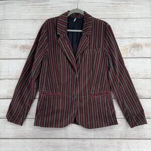 Item: Free People Soft Striped Blazer Jacket Womens Large Red Blue Beige