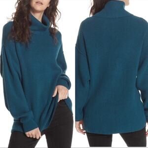 Free People Softly Structured Turtleneck Sweater Tunic in Turquoise size small