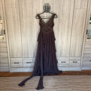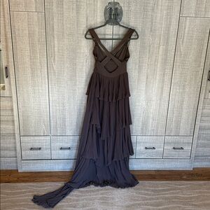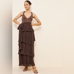Step out in style with this elegant brown tiered maxi dress. Perfect for any occasion, its flowing design offers both comfort and sophistication.