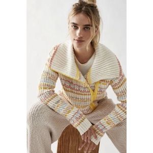 So cool and cozy, this classic cardigan gets a contemporary twist with an exaggerated collar and contrast, asymmetrical zip closure at front for added shape.