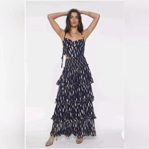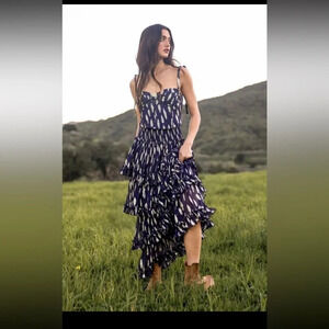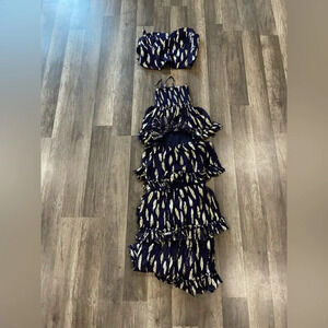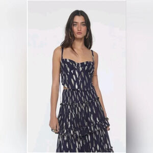 Free People Solar Corset Top Equinox Ruffle Skirt Size Small Blue Gold Set