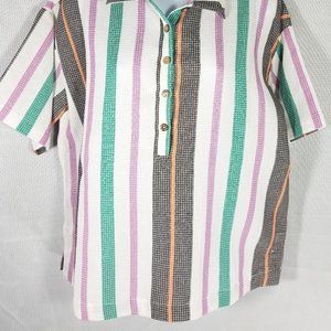 Free People Soleil Time XS Oversize Polo Shirt Top Endless Summer Stripe…
