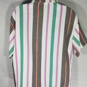 polo from Endless Summer collection featured in an oversized, boxy silhouette with multicolored striped design and woven fabrication for added texture.