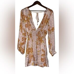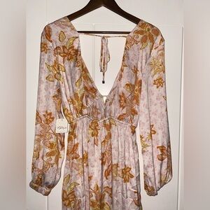 Free People Soli Mini Dress Long Sleeve Women XS Floral Boho Hippie 70'S
