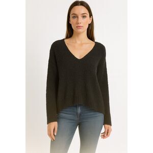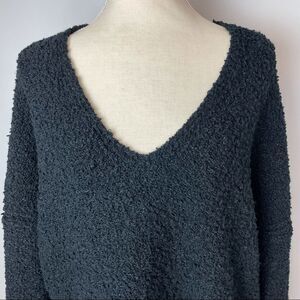 Free People Solid Black Over Sized V Neck Pullover Chunky Cotton Sweater size M