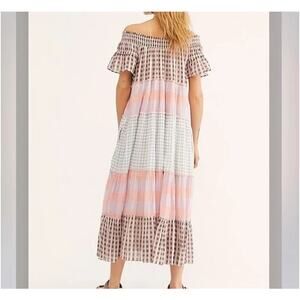 Free People Something Real Plaid Off The Shoulder Maxi Dress Size XS