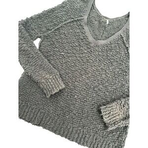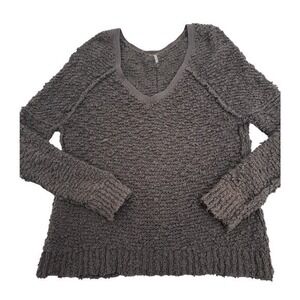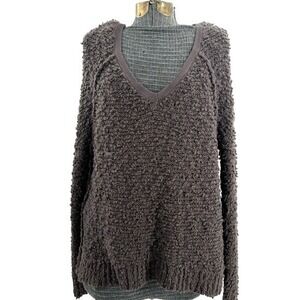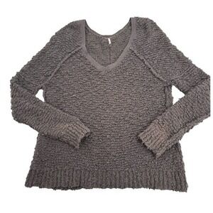 Free People Songbird Oversized Chunky Knit V-Neck Sweater Brown Medium Weight