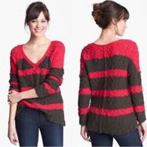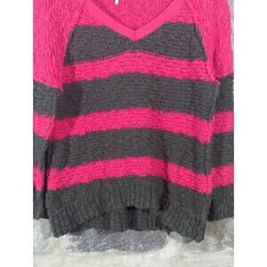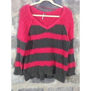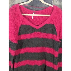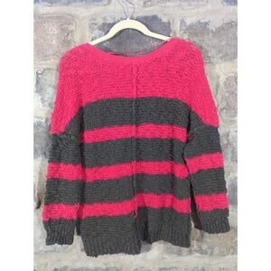 Free People Songbird Rugby Stripe Bouclé Sweater Pink and Gray Oversized Small