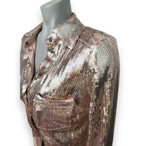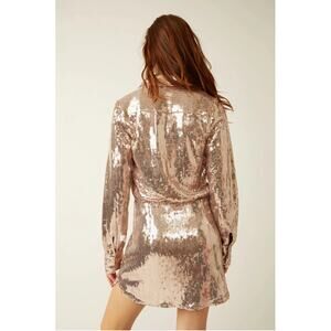 Free People Sophie Sequin Mini Dress in Champagne Size XS NOTE: left shoulder - missing sequins ! Still for sale on Revolve, Saks, Amazon etc Shine bright in this pre-owned Free People rose gold sequin mini shirt dress! Perfect for any festive occasion, this sparkly number is guaranteed to turn heads. The shirt dress style is both chic and comfortable, making it ideal for dancing the night away. It's pre-owned but still in great condition, ready for its next big night out. * **Ideal for:** Holiday parties, New Year's Eve celebrations, concerts, weddings, and more! * **Event Locations:** A swanky rooftop bar, a glamorous club, a festive holiday party, or even a chic dinner date. Vegas New Years Eve NYE * **Style Tip:** Pair with heels and statement jewelry for a complete look!