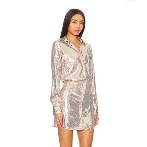 Free People Sophie Sequin mini dress champagne gold snap party Revolve S