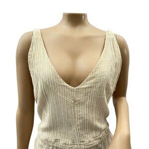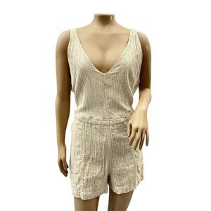 Free People Sorento Shortall Stripe Romper V-Neck Adjustable Straps Sand Ivory M