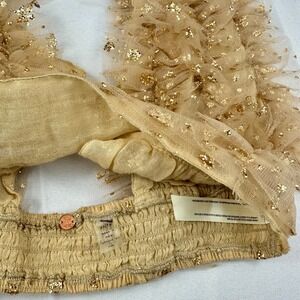 Sheer tulle, plunging neckline, sleeveless, gathered detail, smocked backing, wide under band, tulle back strap, sparkling embellishment