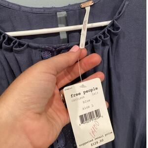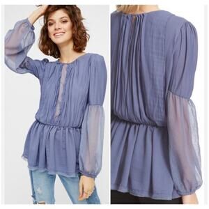 Free People Soul Serene Blouse Size Large Dusty Blue Lace Whimsigoth Boho NEW
