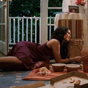 Tags: 2000s, film, movie, fashion, Disney Channel, original movie, boho, bohemian, spaghetti straps, sleeveless, mandala, crochet, magenta, tie back, maxi