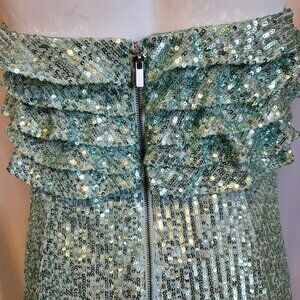 Free People Sparkle Dress Size 12 Mint Green Strapless Mini Ruffle Top NWOT