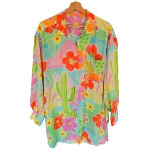 So fun and funky in a cool and colorful design, this floral-printed shirt dress is featured in an oversized, slouchy fit and silky fabrication designed to add shape and dimension to any style.