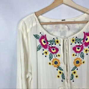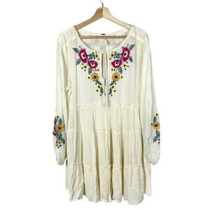 Free People Spell On You Floral Keyhole Neck Long Sleeve Mini Dress XS
